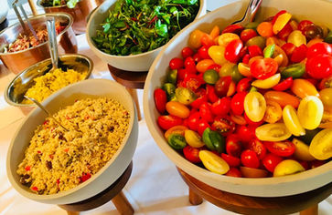 Wij voorzien een zeer ruim en gevarieerd groentenbuffet met verschillende soorten koude en warme sauzen en alsook verschillende broodsoorten.